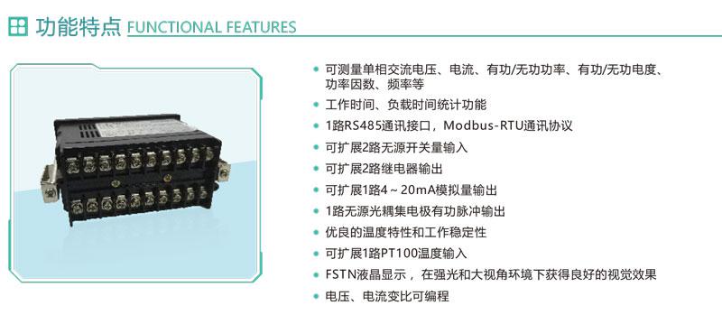 1.可测量单相交流电压、电流、有功/无功功率、有功/无功电度、
