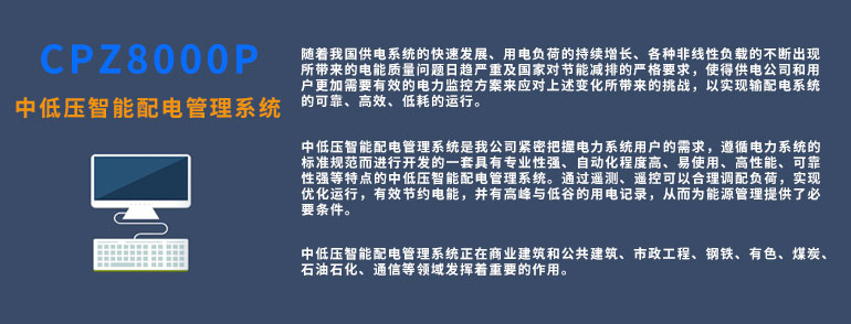 CPZ8000P中低压智能配电管理系统,是基于C/S架构的配电管理系统。该系统具有专业性强,自动化程度高,易使用等特点。通过合理调配负荷,实现优化运行,达到有效节约电能的目的。