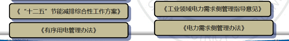 2011年,工信部下发《关于做好当前工业领域电力需求侧管理工作的紧急通知》;国家发改委发布《电网企业实施电力需求侧管理目标责任考核方案》试行办法,明确要求电网企业要确保年度节约电量不低于经营区域内上年售电量的千分之三、最大用电负荷的千分之三。