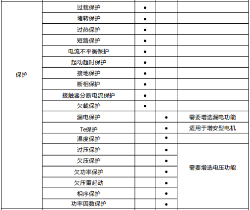 用户可以根据实际情况自定义设置电动机保护参数设定值及保护执行方式(如:报警、跳闸、退出)从而实现对电动机的灵活保护功能。