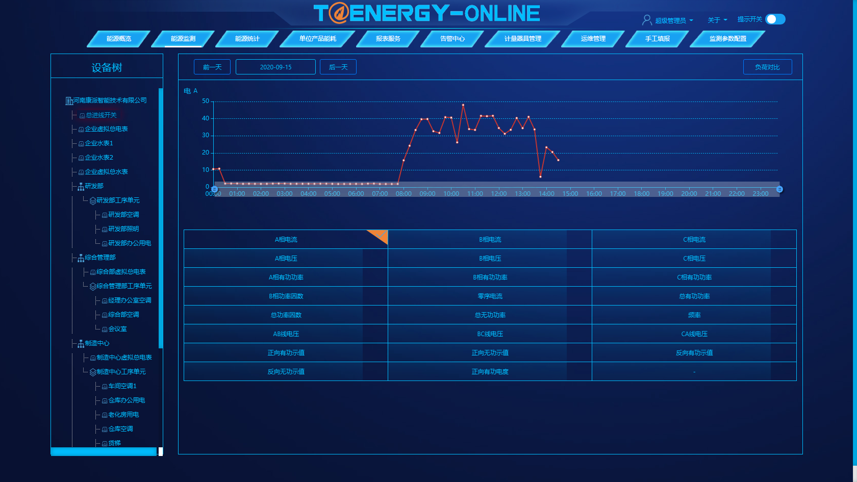 曲线实时动态展现各类型能耗、各设备能耗数据;支持查询近一月数据曲线;