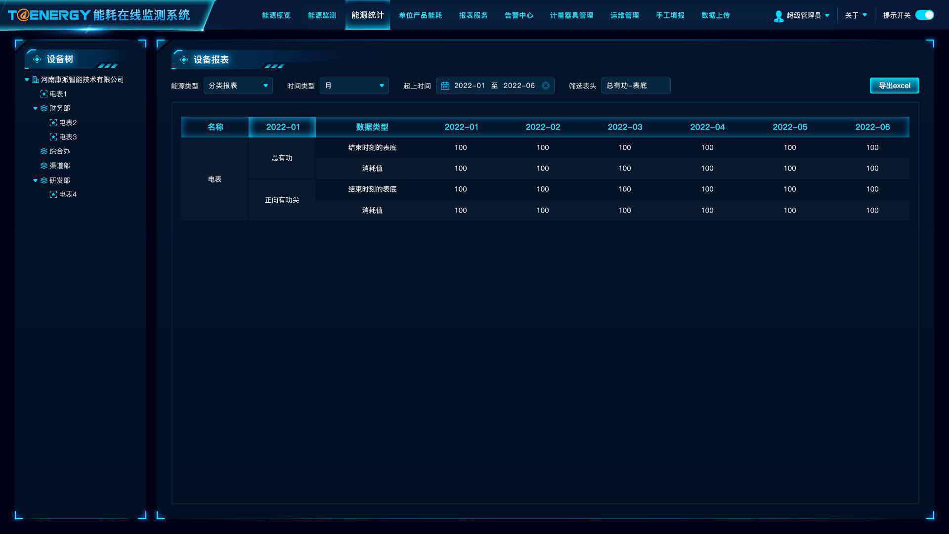 • 能耗数据KPI指标分析: