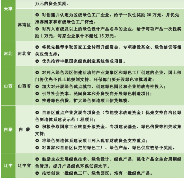 关于绿色工厂,不同的省市都有不同的鼓励性政策补贴,下图是部分省份的政策补贴: