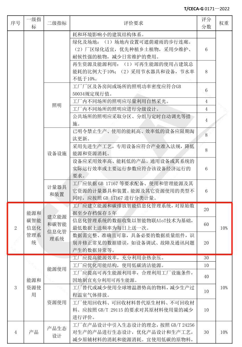 零碳工厂:中国节能协会发布的团体标准《零碳工厂评价规范》中表B.2零碳工厂评价要求表中一级指标中能源和碳智能化信息管理系统的二级指标能源和碳智能化信息管理系统的具体评价要求中建有能源管理中心可以+100分,占比10%。