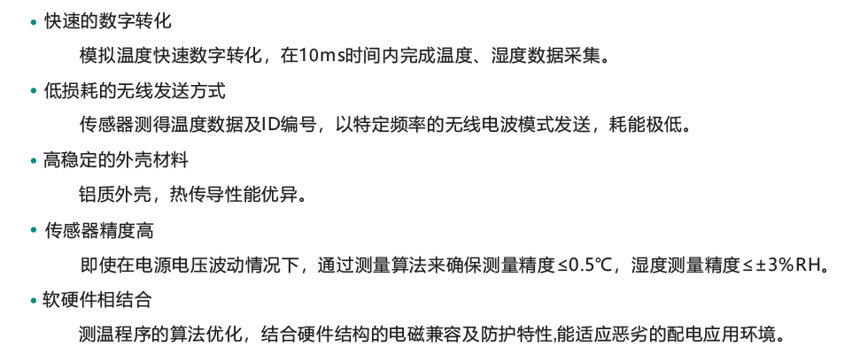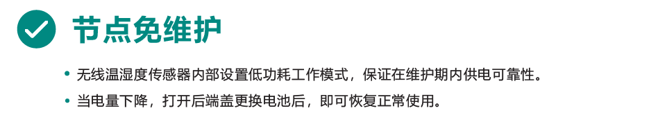 产品采用大容量电池供电方式,集成低功耗、抗干扰、无线加密、传感技术于一体。产品结构材料选用热稳定性高的铝型材,保证了在复杂环境下工作的稳定性和可靠性。
