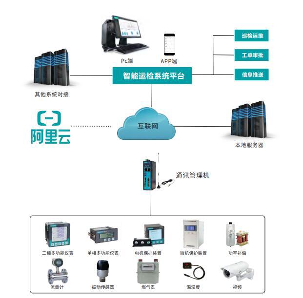 搭建⾯向全国⽤⼾统⼀的智能运维管理系统平台,为客⼾提供巡检业务管理服务。建⽴“监测—巡检—审核—通知”的闭环体系,以提⾼企业运检管理及信息化⽔平为核⼼,以“互联⽹+”为指导思想,通过物联⽹、⽆线传输、云服务等技术与巡检业务相结合,提供从源端到云端整套运维解决⽅案。