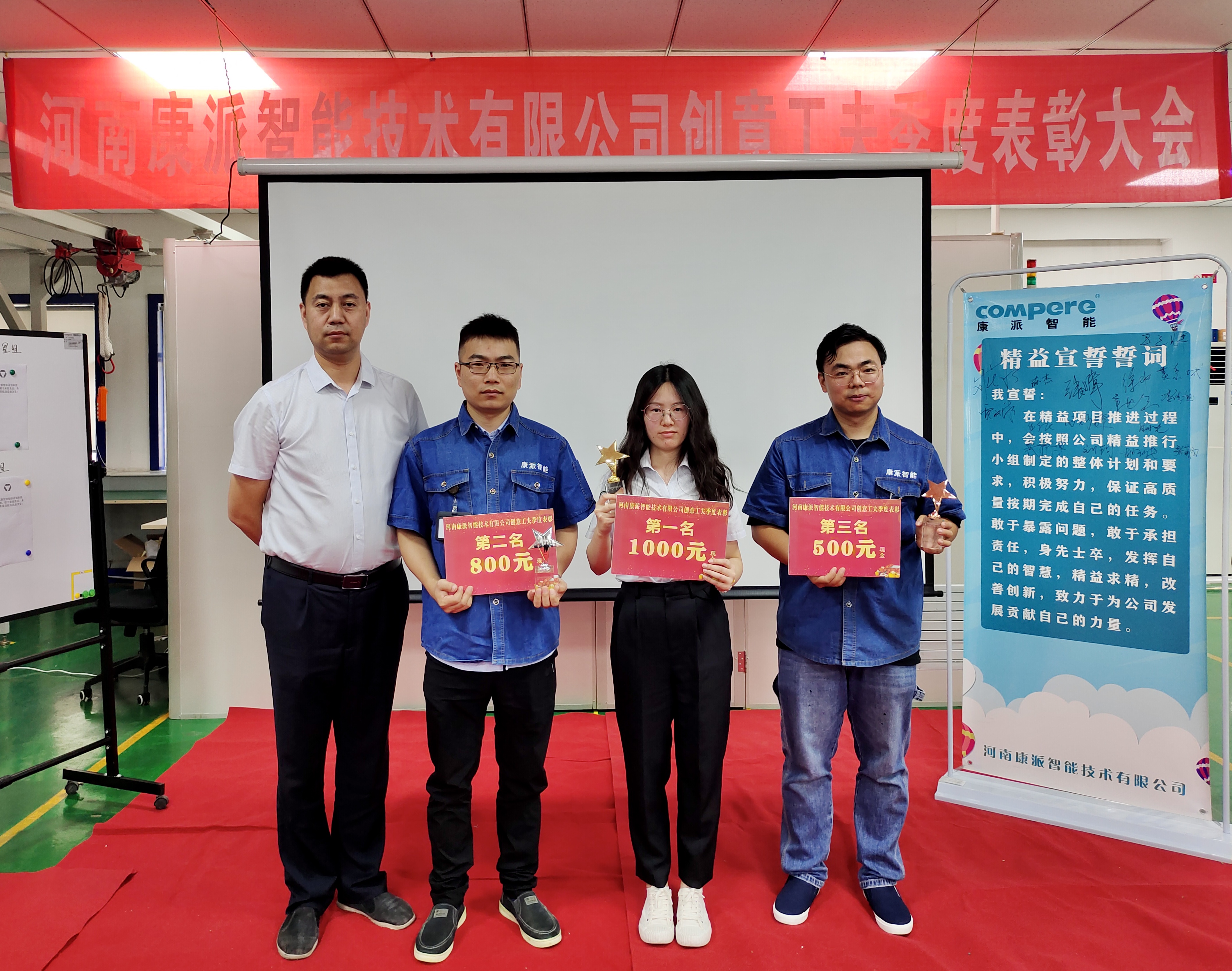 本着公平、公正、公开的原则,在公司创意工夫委员会全体成员根据公司创意工夫评分标准认真评比后,最终评选出2021年第二季度创意工夫提案获奖员工,他们分别是:一等奖--财务部--阳雪,二等奖--生产部--徐坤,三等奖--研发部--张萌阳。获奖员工逐一上台,为大家讲解自己的创意工夫提案,并分享自己在工作中落实创意工夫的经验。