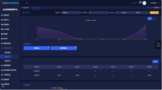 ·项目汇总:展示企业的节能减碳的项目总减碳量及各个项目的减排量和占比