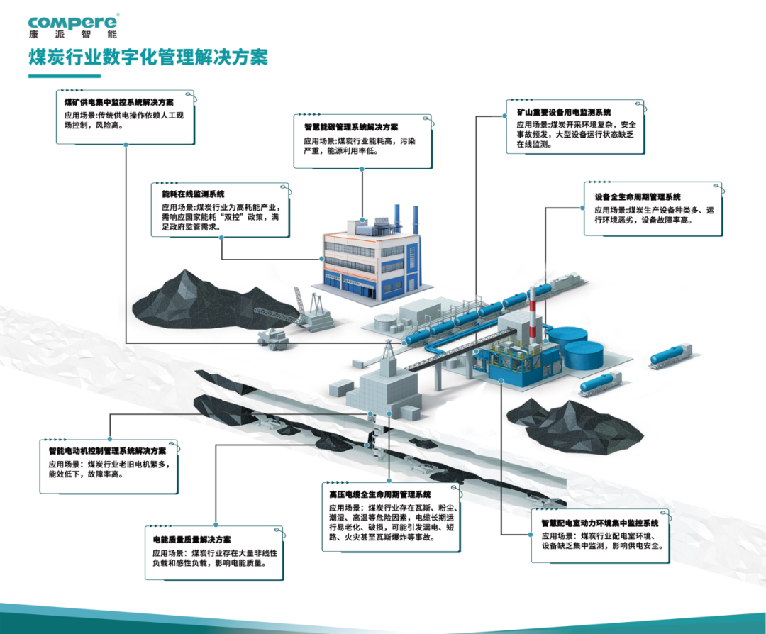 针对煤炭行业特点,提供全面的数字化管理解决方案,涵盖智慧能碳管理系统、设备全生命周期管理系统、矿山重要设备用电监测系统、重点用能单位能耗在线监测系统、电能质量治理、煤矿供电集中监控系统、智慧配电室动力环境集中监控系统、高压电缆全生命周期智能管理系统以及智能电动机控制管理系统解决方案等,助力煤炭企业实现能源可视化、生产精细化、管理智能化,推动行业向安全、高效、绿色方向发展。