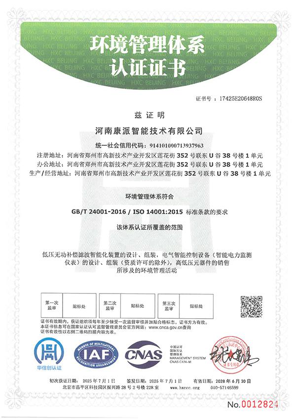 环境管理体系认证证书