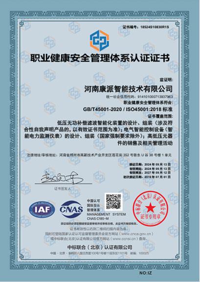 职业健康安全管理体系证书